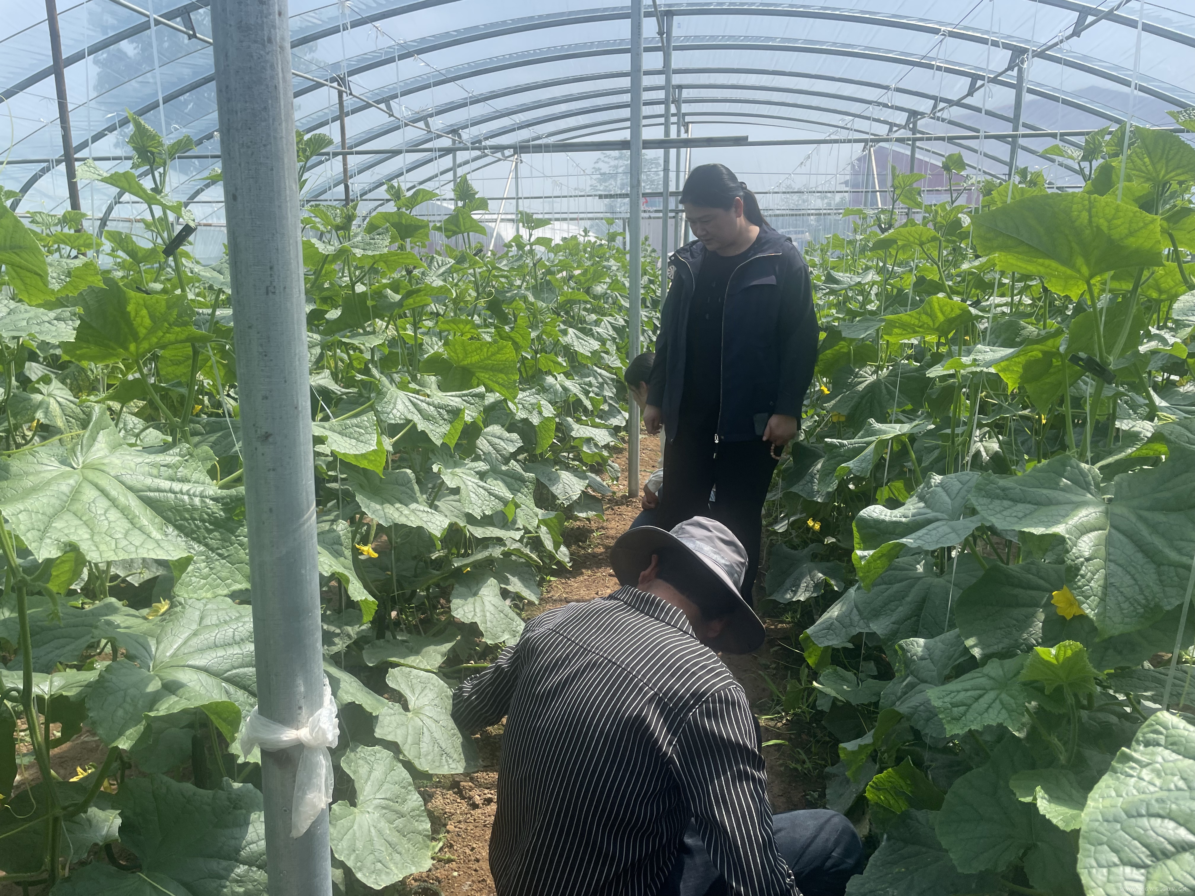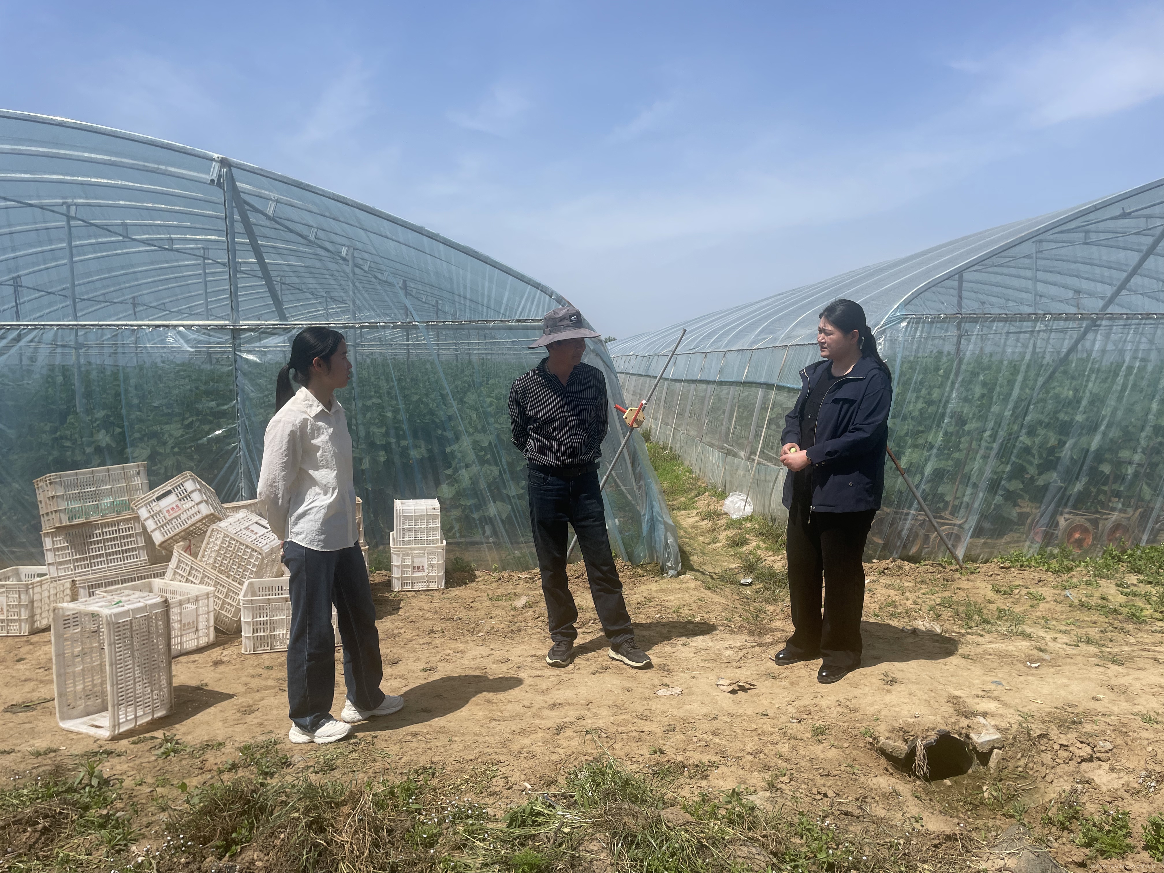 4月17日,八台镇主要负责同志到沟李村蔬菜大棚种植基地进行查看。