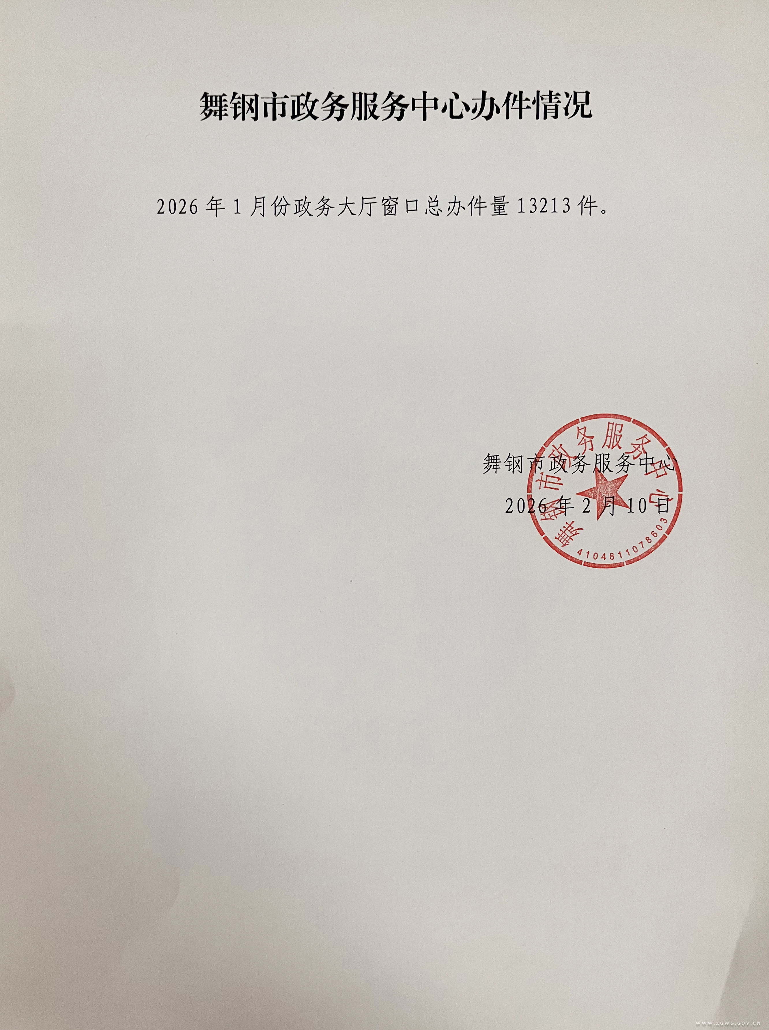 2026年1月份办件量情况